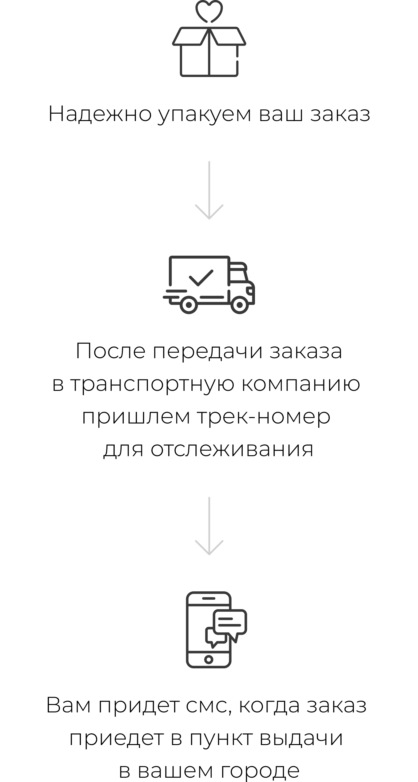 • Вы можете отслеживать весь путь заказа на сайте Boxberry, CDEK, Почта России